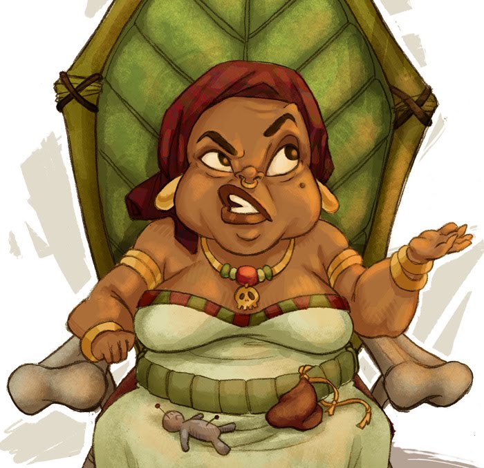 Vous entrez dans une petite baraque à l'état pitoyable située dans un coin mal famé du port. Une odeur de tabac vous serre les tripes dès que vous mettez un pied dans le taudis. Une brume nauséabonde à couper au couteau entrave votre vue. Derrière une table basse, assise sur ses genoux, vous voyez Mouthba, une femme à la peau noire avec un peu d'embonpoint, fumant au narguilé. Elle vous accorde la parole avec son air de sombre marâtre libertine avec une réplique toujours identique :