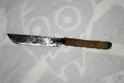 « Je ne sais pas. Je ne connais pas. J’ai trouvé ça… Là où je suis allé. Je n’ai pas le droit de dire où… »« Je vois. C’est de l’Olath, le métal de l’obscurité… Paraît qu’il est magique. Une arme forgée dans un tel métal, même allié à un autre, est, paraît-il, exceptionnelle ! Mon mari en avait forgé une, une fois… Je me souviens… Quelle belle pièce… Qu’est-ce que tu veux en faire ? »