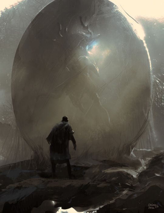 A l’intérieur de son esprit, le guerrier pouvait sentir un sentiment de satisfaction de la part de la Déesse. De satisfaction et de curiosité. Sans pour autant que celle-ci n’émette le moindre son, la moindre remarque. Et, sous les yeux ébahis de la fille Kobayashi, lorsque l’aventurier somma intérieurement à l’œuf de s’ouvrir… Celui-ci s’exécuta. La coquille face à Aliéron se fissura de haut en bas, progressivement, émettant un raie de lumière intense, jusqu’à ce qu’un liquide gluant et transparent n’en coule à ses pieds. Puis… plus rien. La lumière s’en fut, le flot visqueux s’arrêta. Jusqu’à ce que, après quelques secondes sans mouvement, l’œuf ne s’ouvre complètement en deux, inondant de l’étrange liquide le guerrier qui, même s’il désirait s’écarter, s’en trouverait incapable, comme si son corps se tenait prêt à intervenir depuis sa position. Et c’est ce qu’il se passa. Car une silhouette s’écroula en même temps que la coquille, mais avant qu’elle ne touche le sol, le corps d’Aliéron réagit et la rattrapa délicatement dans ses bras.