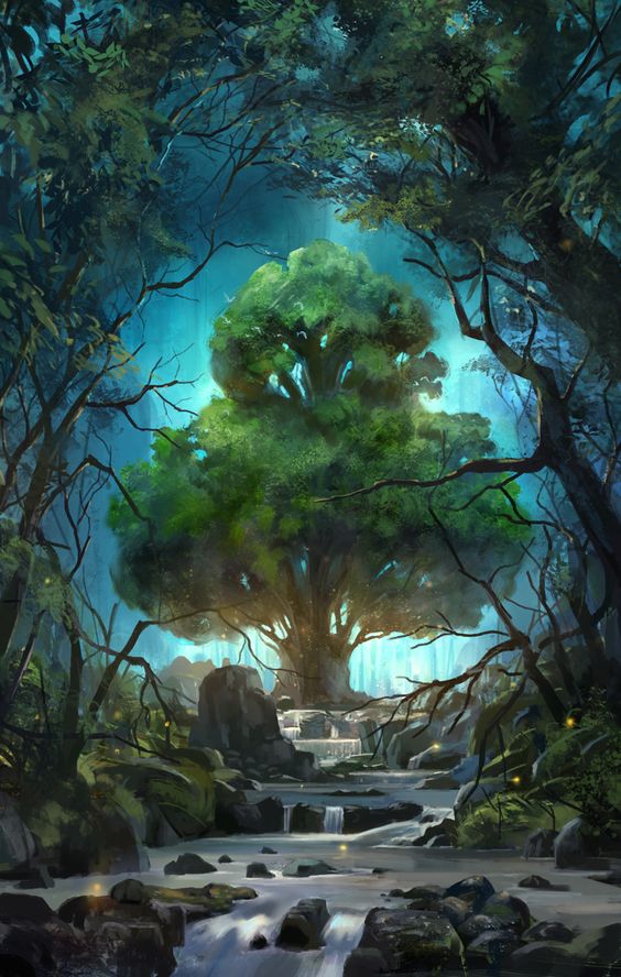 Les deux pieds dans l’eau peu profonde, il regardait avec admiration l’arbre majestueux qui se tenait bien droit devant lui, au milieu d’une petite mare, les racines dans l’eau jouissant des généreux rayons du soleil qui lui parvenaient de nombreux orifices du plafond.